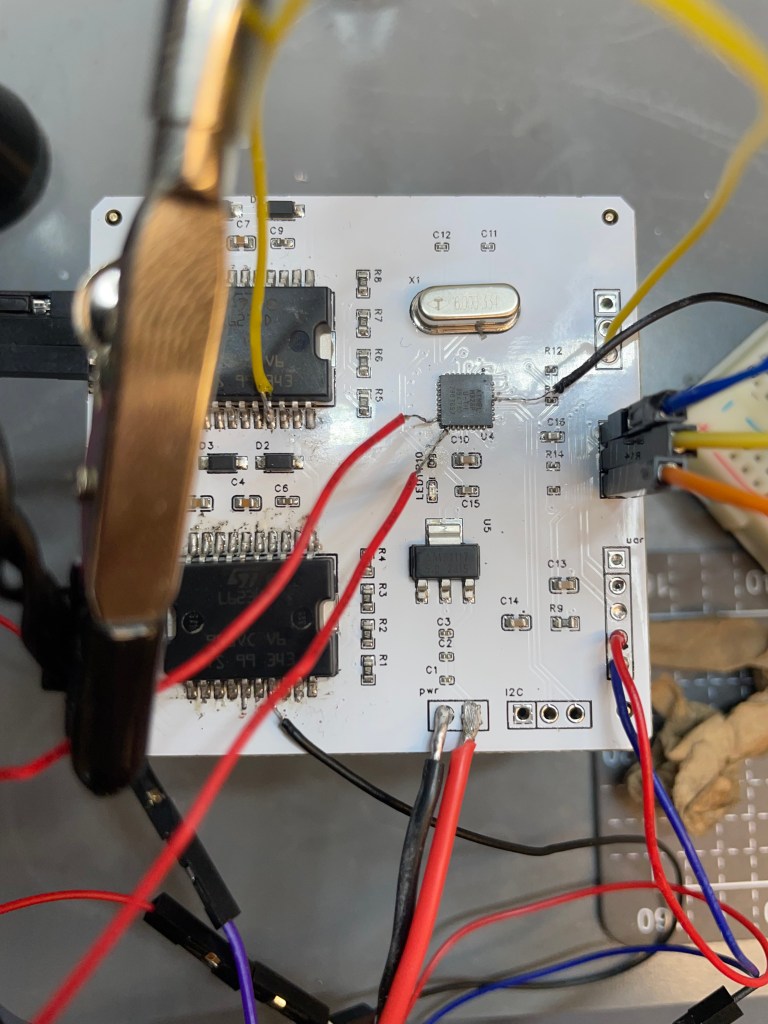 Utilizing two L6234 brushless motor drivers and an embedded RP-2040, the board is capable of receiving an analog or serial velocity command and converting that command into a three phase output. By controlling the phase of this output the driver controls the rotation speed of the magnetic field. Because the rotor will rotate at roughly the same speed as the magnetic field, this method gives accurate velocity control. Commonly these drivers rely on encoders to provide accurate position/velocity feedback to the controller, for simplicity the driver I have designed only utilizes phase current feedback. This comes with the risk of there being an external torque that overcomes the torque generated be the magnetic field resulting in skipping.